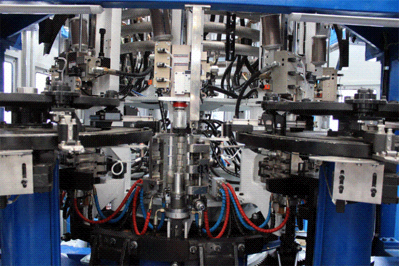 吹瓶部分實施了機械手雙層軌道曲線設計、吹瓶機模號加裝壓力檢測裝置、主吹輪氣源進出采用旋轉(zhuǎn)式動靜密封氣套(發(fā)明專利產(chǎn)品)、吹瓶機主吹輪采用旋轉(zhuǎn)式機械補償水套等多項技改措施,大大加強了吹瓶運行的安全性、穩(wěn)定性,并延長了關(guān)鍵部件的使用壽命。